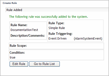 Click to select the Simple Rule option button and the Event Driven option button, then select AlarmSystemEvent from the Event Name drop down.