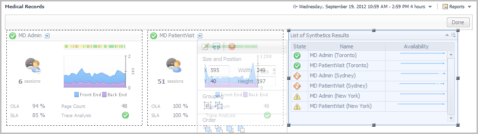 From the Data list in the action panel, drag and drop Synthetic User Results onto the dashboard display area.