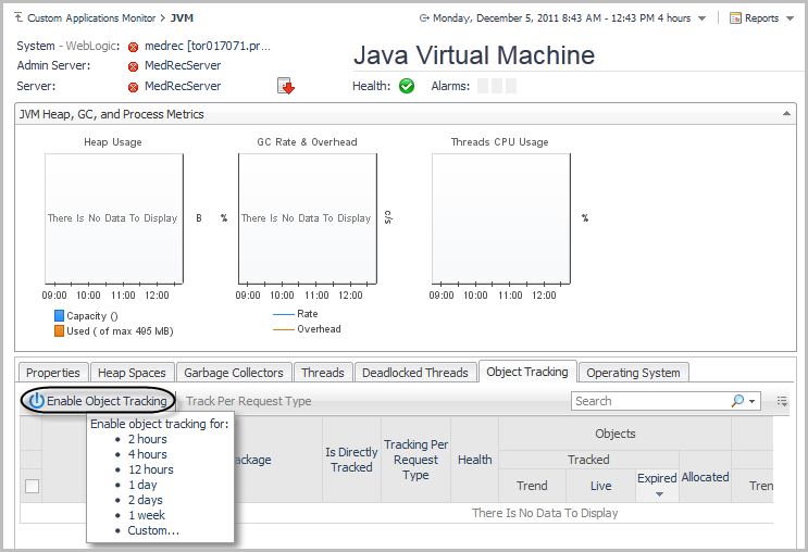 In the Java Virtual Machine (JVM) view, click the Object Tracking tab.