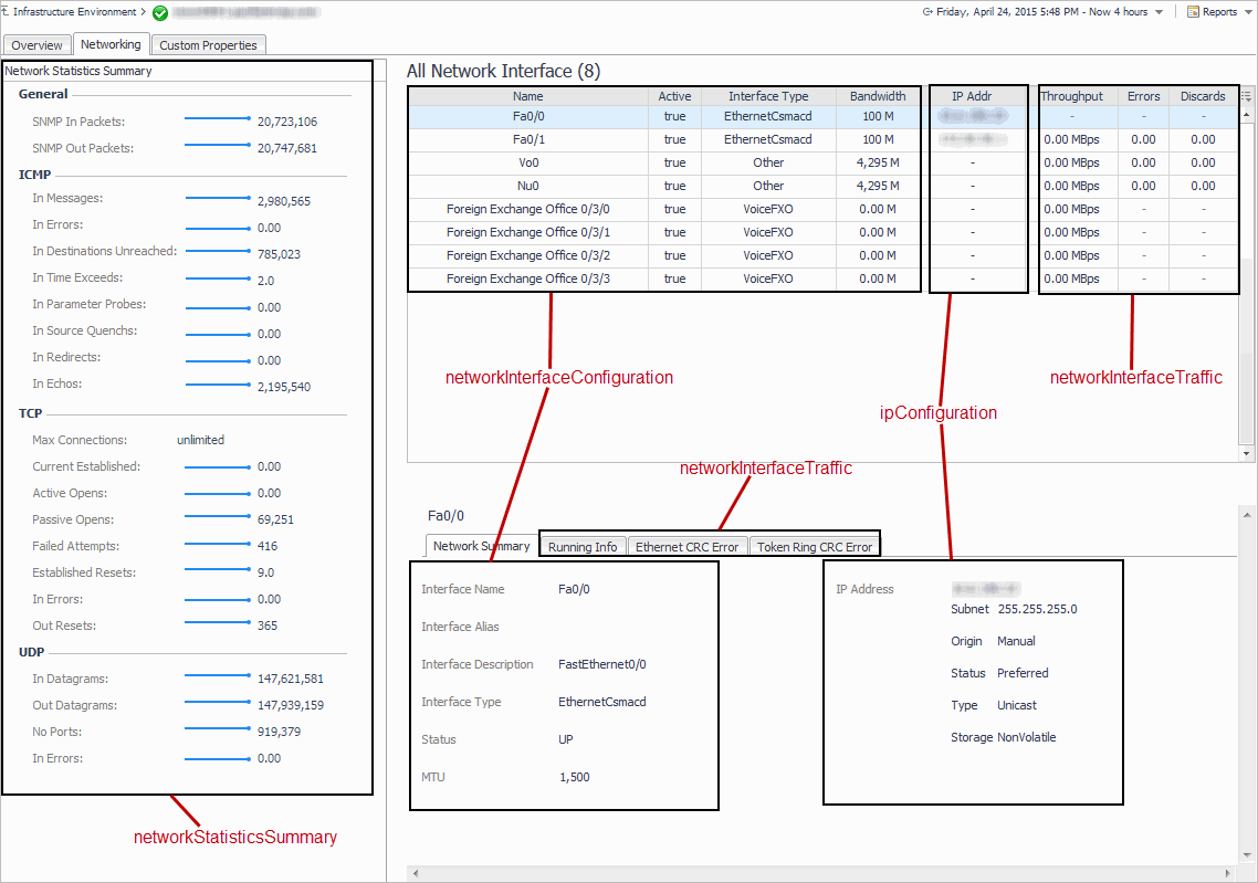 Through two embedded views (All Network Interface (xx) and Network Statistics Summary), the Networking view enables you to view information pertaining to monitored network interfaces.