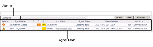 From the Sybase Agent Table, you can drill down to Sybase Agents Home Pages.