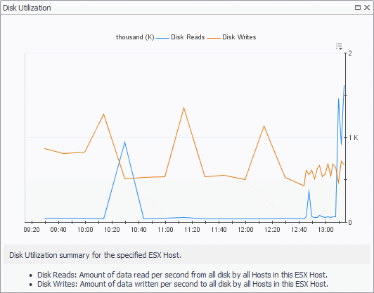 Storage Summary, Disk Usage. The rate at which the server reads from or writes data to disk during the selected time period.