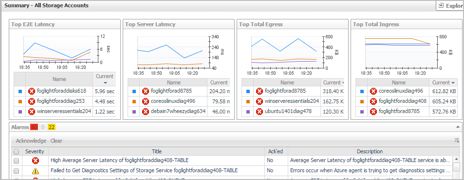Shows the top three storage accounts with the highest end-to-end (E2E) latency.