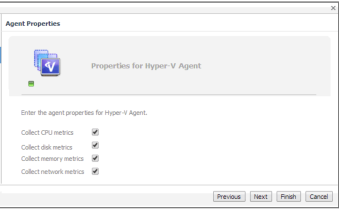 When Hyper-V, SCVMM, and SOFS agent packages are successfully deployed, you can create agent instances, activate them, and start their data collection. To perform these steps in a single operation for one or more monitored hosts, use the Agents area on the Hyper-V Configuration dashboard.