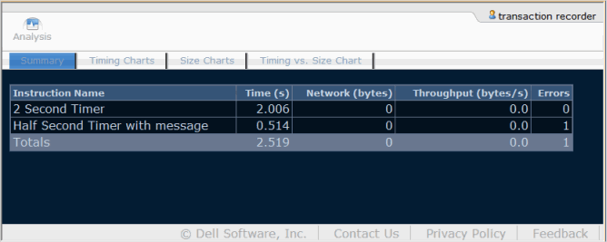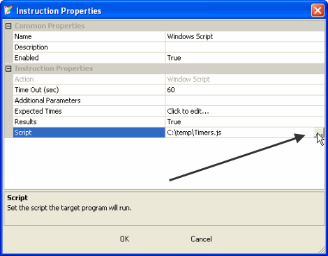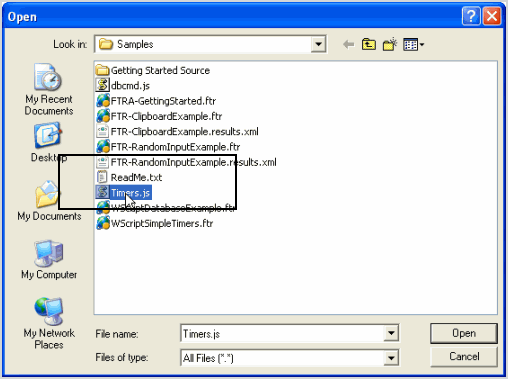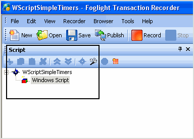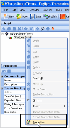 You must point the timer.js file used in the sample script to the Foglight Transaction Recorder. Right-click the Windows Script transaction and select Properties. |