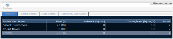 This script builds upon the WScript Simple Timers example by performing queries against a database. Within the called script are two timers which report the elapsed time of the two queries. The provided dbcmd.js script uses the Northwind database, but can be modified, then used with the required database by editing the dbcmd.js file in the Documents and Settings > My Documents > My Foglight Scripts > Samples directory.
