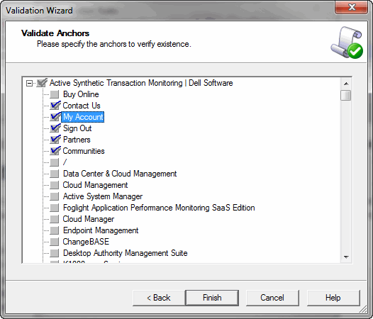 Java Script—executes the Java Script entered and has the ability to raise a warning or error if the script determines that the page is not what it should be.