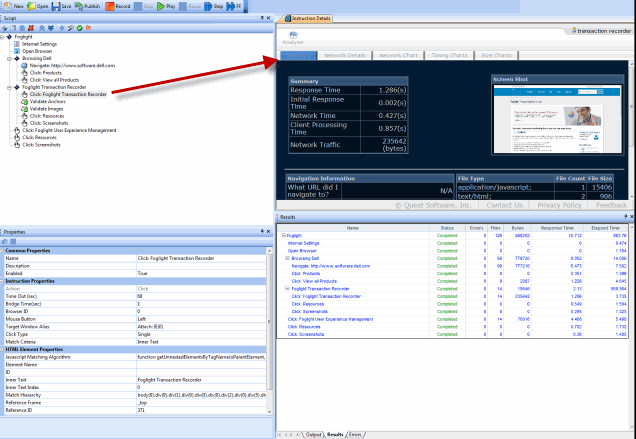 Click the Click:Foglight Transaction Recorder instruction in the Script window.