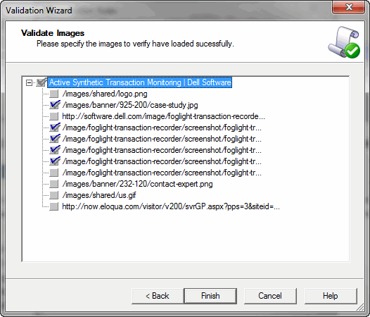 The Foglight browser interface allows you to define the monitoring interval/frequency, push the script to the player agent, and create service models. Refer to the Foglight Transaction Player User and Reference Guide for procedures on viewing script playback results on Foglight.