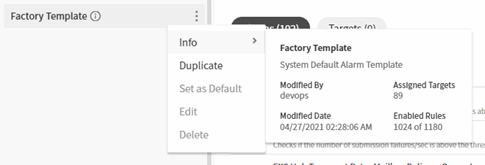 When creating a new template, the default alarm configuration for the selected domains will be populated. Any changes to the default configuration will be applied to targets of this template. Future changes to the default alarms will not be applied to the new template.
