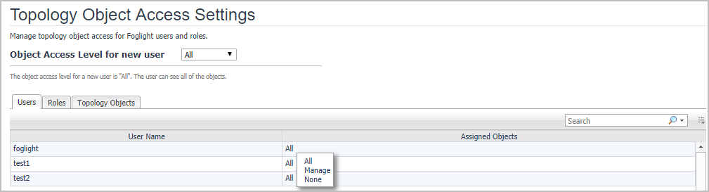 Internal. Internal users include the users that are created after the installation. When you create an internal user in Foglight, you assign a user name and password to that user.