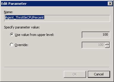 To edit a parameter, select it in the list and click Edit and use the Edit Parameter dialog box that appears. On the server and agent level, this dialog box lets you override inherited parameter settings.