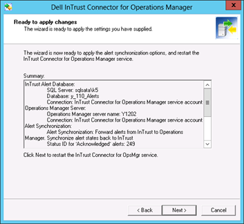 • Select Forward alerts from InTrust to OpsMgr if you want to have InTrust alerts forwarded to Operations Manager (alert states will not be synchronized back to InTrust).