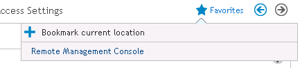 Displays a list of favorite pages within the Manager. Pages are made a favorite by clicking on the Bookmarks link and then Bookmark current location.
