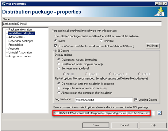 LiteSpeed can also be deployed silently via a deployment tool such as SCCM or LANDesk. In a mass deployment, the steps are as follows: