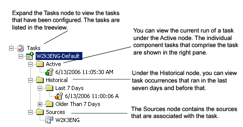 If you expand the Tasks node, you can view existing tasks and make changes to the individual tasks.