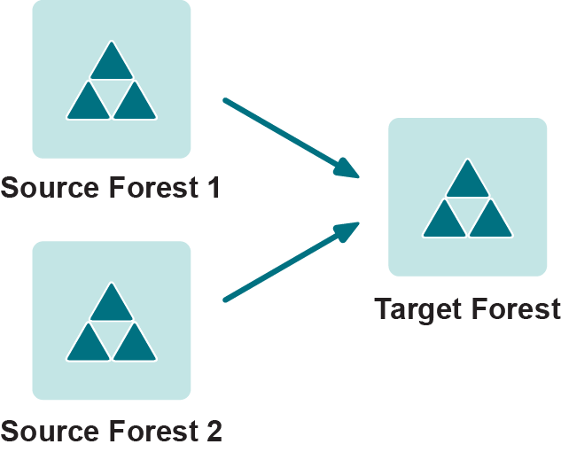 • Merge multiple forests to a new forest. For example, you might merge two or more entities to create a new combined entity, as in a merger or reorganization.
