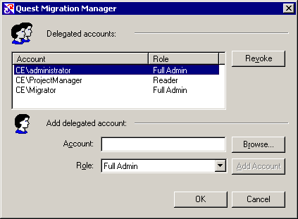 Migration Manager allows administrators to delegate specific tasks to trusted persons responsible for particular stages of migration. For example, you can delegate the rights to manage the migration within a specified pair of domains to the administrators of those domains, or you can delegate the rights to process a specific server to the server administrator.