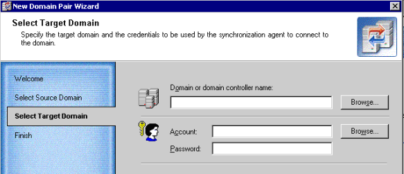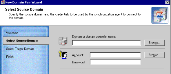 To create a domain pair, right-click the Directory Migration node and select New Source and Target Domain Pair from the shortcut menu. This will start the New Domain Pair Wizard, which will guide you through the process: