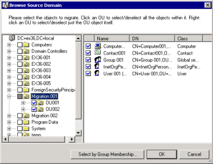 • Migrate selected objects with their OUs to the selected target OU—If this option is selected, all selected objects and containers will be created on the target.