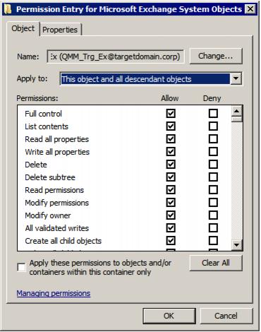 11. Allow Full Control permission for the Target Exchange Account.