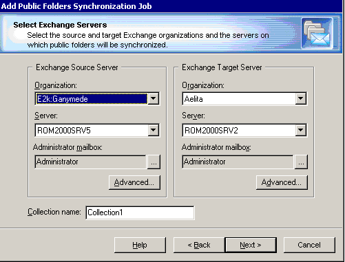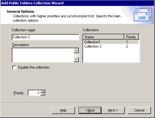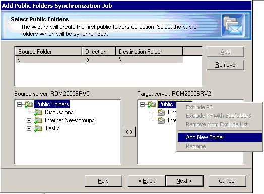To create a new collection for an existing public folder synchronization job, right-click the job in the management tree and select Add Collection from the shortcut menu.