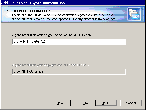 The wizard will install the public folder synchronization agents on the source and target Exchange servers. If no Migration Manager for Exchange component has been yet installed on these servers, you will be able to specify the installation path for the agents. As soon as the agents are installed, the QMMEx$ServerName$ shared folder will be created in the path you specified. All the agents or components you install later will be installed in the same location. However, if by the time you install the public folder agents, any other agents or components have already been installed, you will not be allowed to specify the installation path for the agents, and they will be installed in the location where the QMMEx$ServerName$ shared folder has been created.