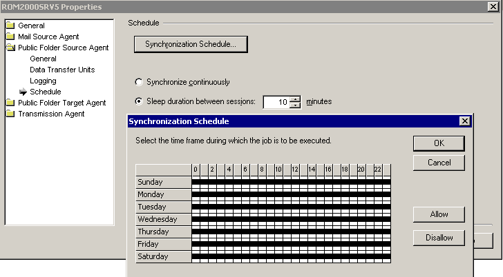 Each public folder synchronization agent has its own scheduling options. This lets you define separately when the agents are allowed to put additional stress on the Exchange servers and on the network.