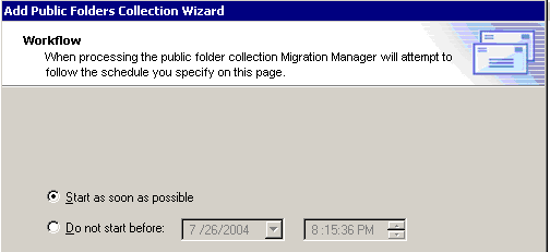Set the preferred date to start migrating the collection. By default, the option to Start as soon as possible is selected.