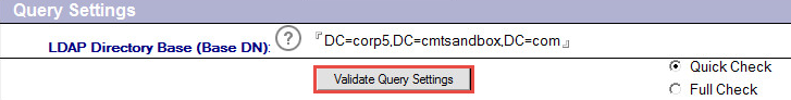 To ensure that the specified directory base, where all LDAP searches will be conducted, is correct; you should validate this setting as well; click the Validate Query Settings button: