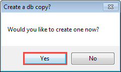 If you are working with a local copy of the Migrator for Notes database, then click No. The Create a db copy? dialog box opens.
