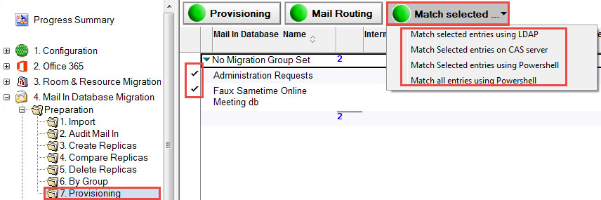 Select mail-in databases in the Data Pane and then click the Match selected button