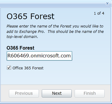 Add Office 365 Forest: Exchange (MAPI) Screen