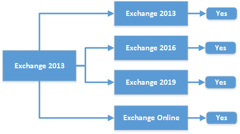 The current release of Migrator Pro for Exchange supports mailbox migration for these source/target scenarios: