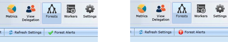 The Forest Alerts may not appear during the initial setup of the forest. It may take an hour or more for the first Alert indicators to display accurately. Also note that the Forest Alert indicator is not available for Tenant (Office365) Forests. |