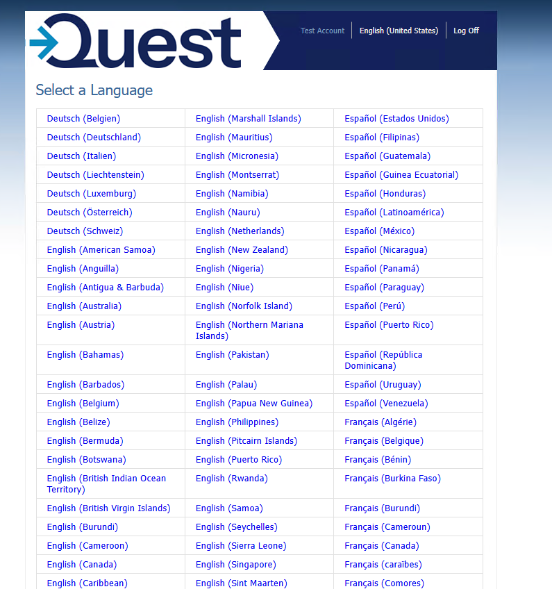 Click on English (United States) at the top right of the screen, and then select More choices to view a list of available languages. If a user changes their default language, all future End User notifications will be sent in this language.