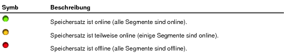Der Speichersatz Status wird mit den folgenden Symbolen angezeigt.