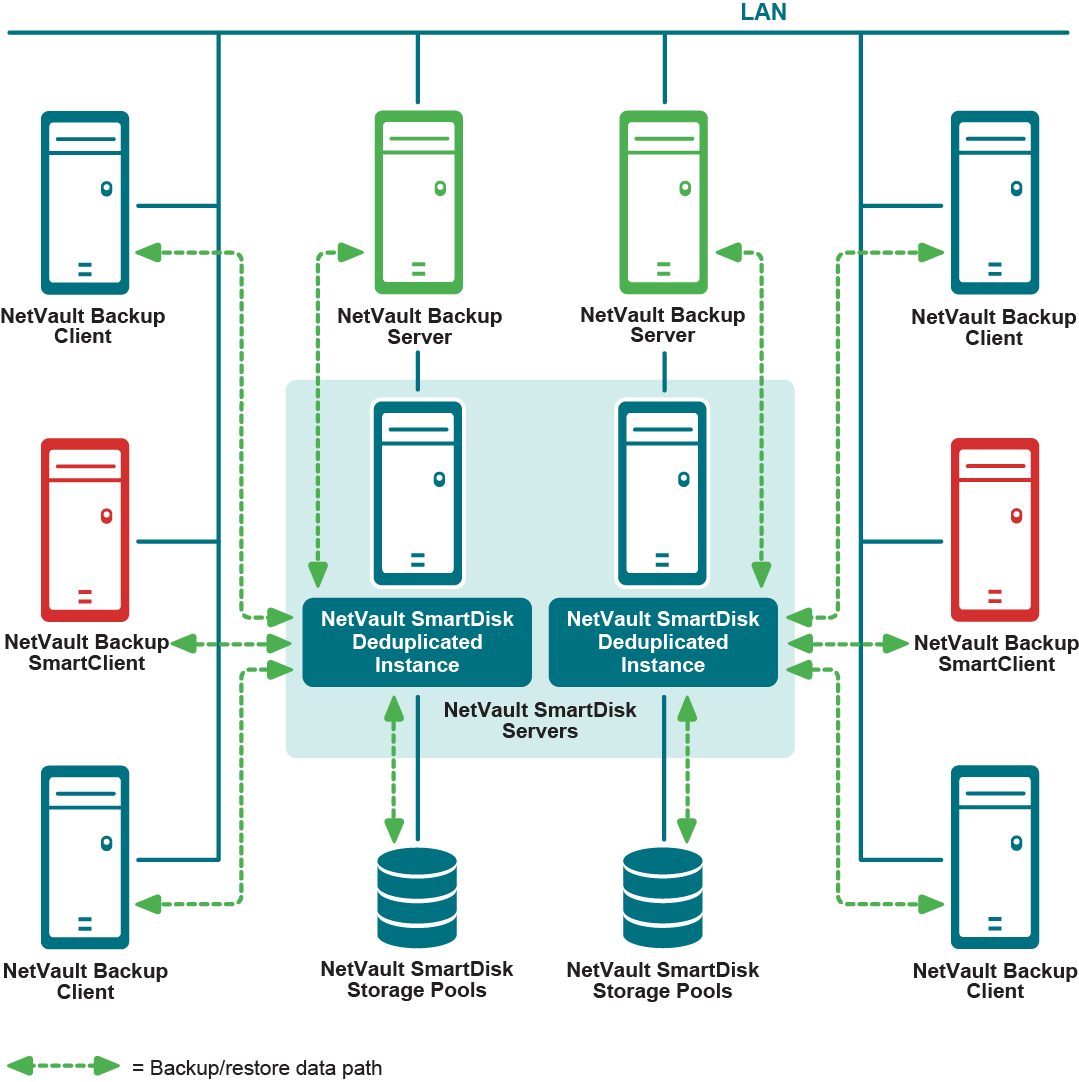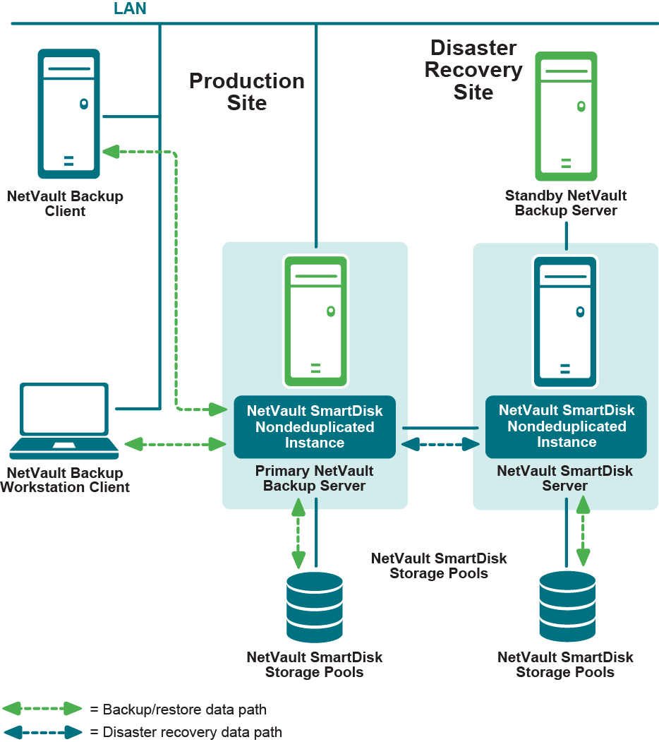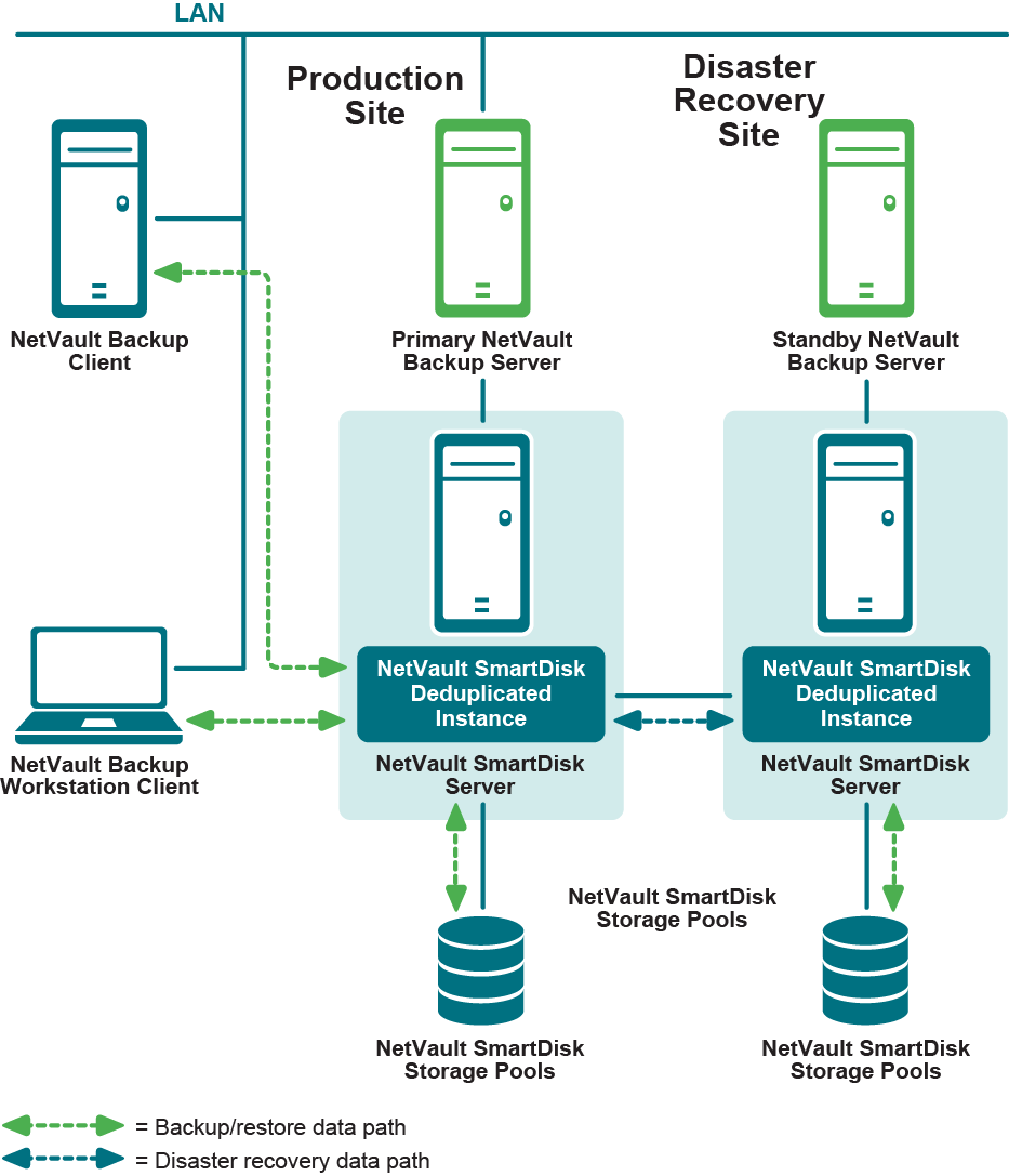 The data stored in a NetVault SmartDisk Instance is best protected from disaster if you deploy multiple NetVault SmartDisk Instances in a disaster-recovery scenario.