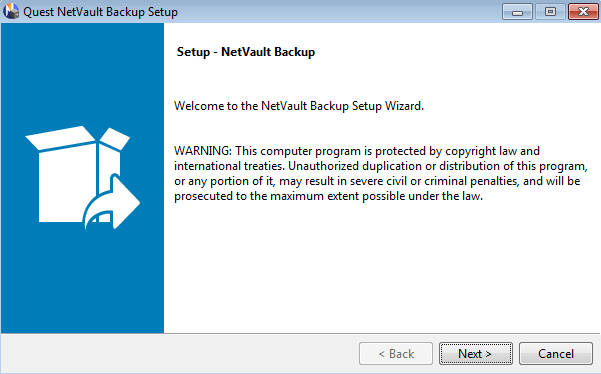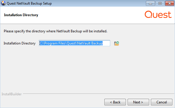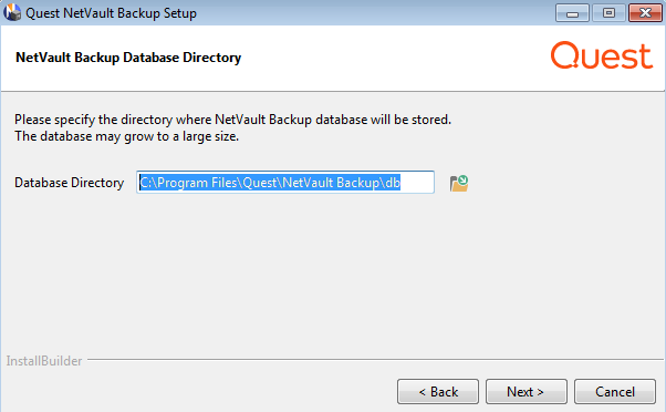 When installing the NetVault Backup Server, the NetVault Backup Database Directory dialog box is displayed next. This dialog box is not displayed during client installations. |