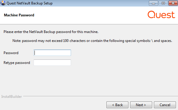 In the Machine Password dialog box, specify a password for the NetVault Backup machine. |