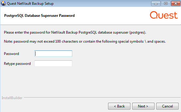 Allow NetVault Backup to create PostgreSQL Linux user: By default, this option is selected. |