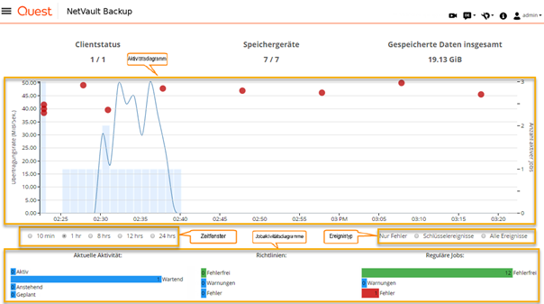 Nachdem NetVault Backup installiert wurde, können Sie sich mit dem Benutzerkonto admin Benutzerkonto anmelden, um auf NetVault Backup zuzugreifen. Standardmäßig ist für diese Konten kein Kennwort festgelegt. Nach der ersten Anmeldung müssen Sie das Kennwort für den Admin-Benutzer festlegen. Weitere Informationen zu NetVault Backup Benutzerkonten finden Sie unter Verwalten von Benutzer- und Gruppenkonten. |