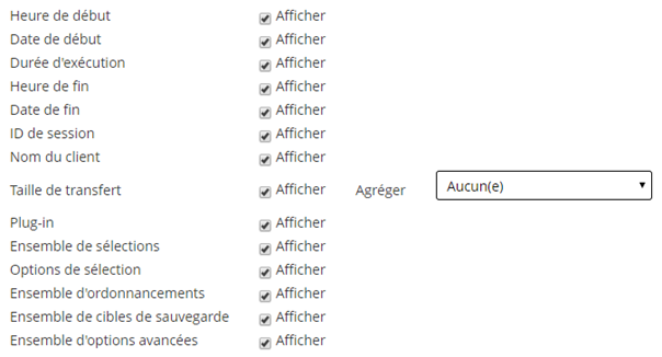 Afficher les colonnes : pour afficher des colonnes masquées, cochez les cases Afficher correspondantes. |