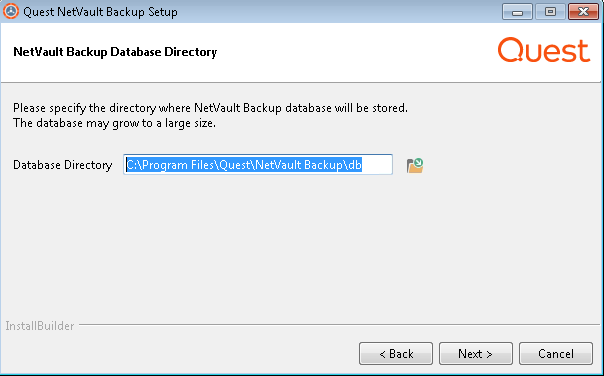 Windows:C:\Program Files\Quest\NetVault Backup\db or C:\Program Files (x86)\Quest\NetVault Backup\db |