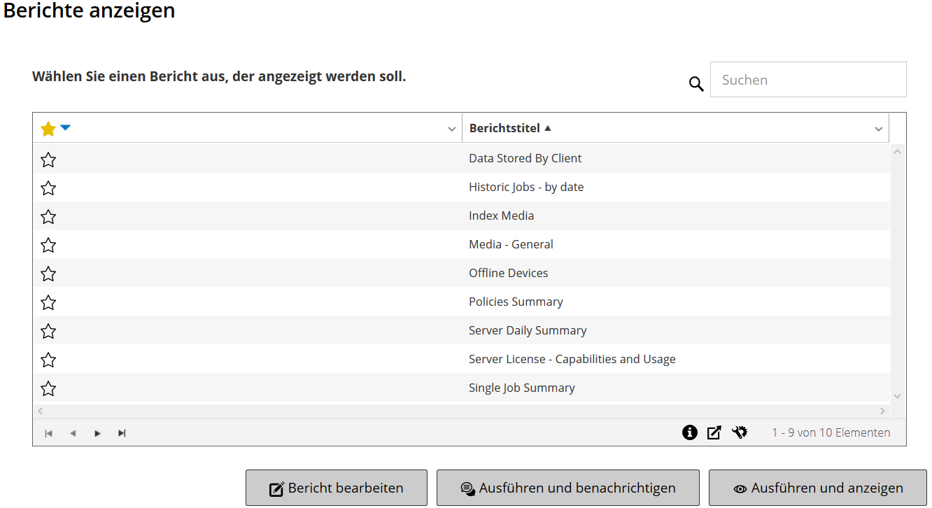 Ausführen und Anzeigen von Berichten: Berichte – Berichte anzeigen und ausführen