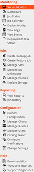 Abbildung 3. Navigationsbereich der NetVault Backups Webbenutzer Schnittstelle