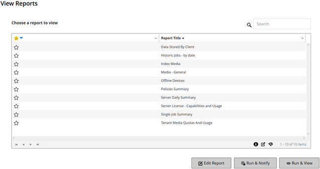 You can access the reports from the View Reports page. You can run and view reports on demand or create report schedules to automatically generate reports at specified times. NetVault also allows use of events and notification methods to send reports by email reports.