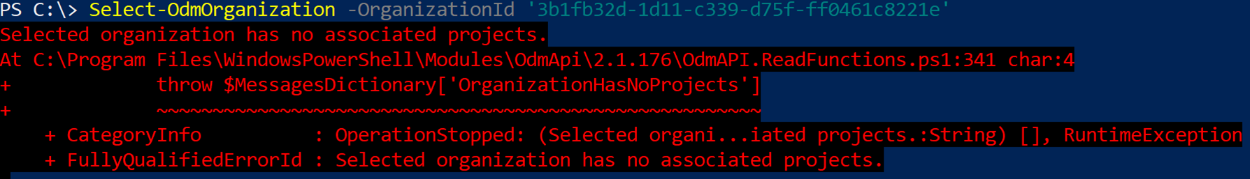 Select-OdmOrganization -OrganizationId '6a079d6e-e98a-475b-acba-8b08e9caa430'