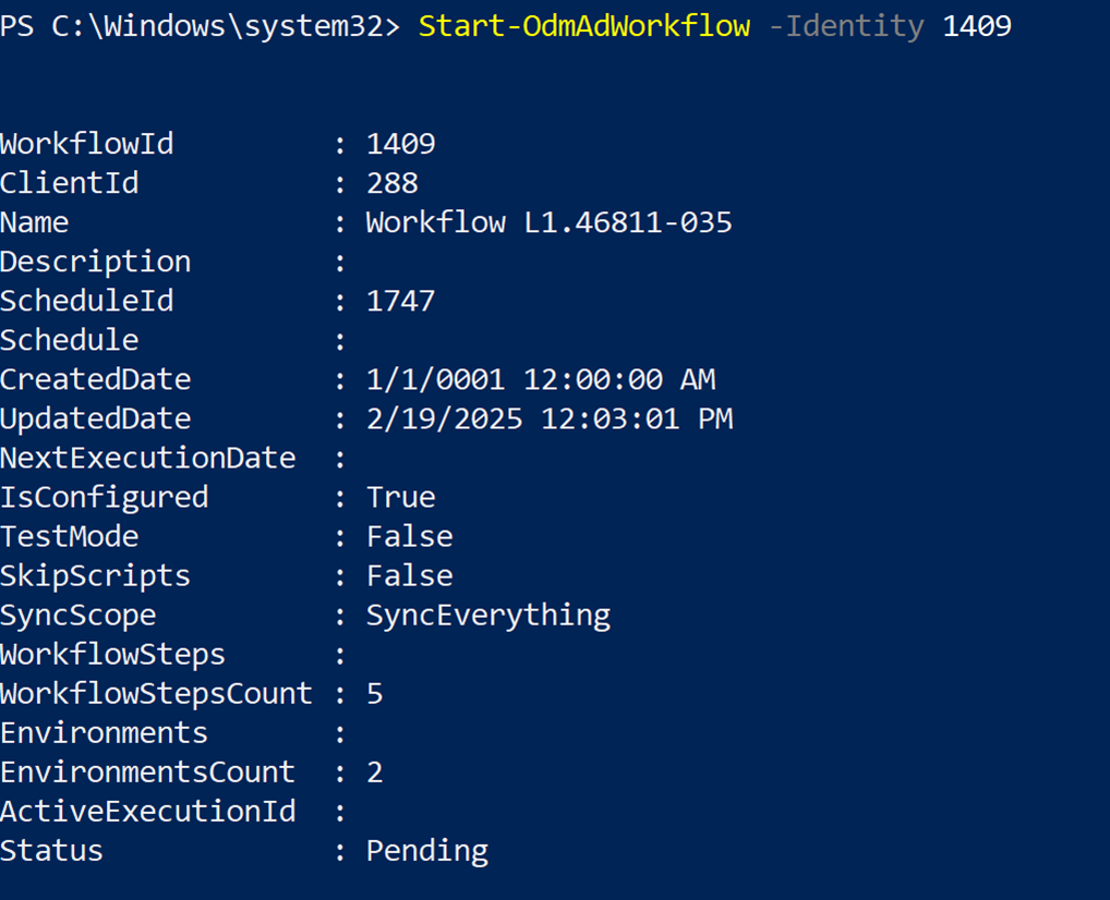 Start-OdmAdWorkflow -Identity <WorkflowId>