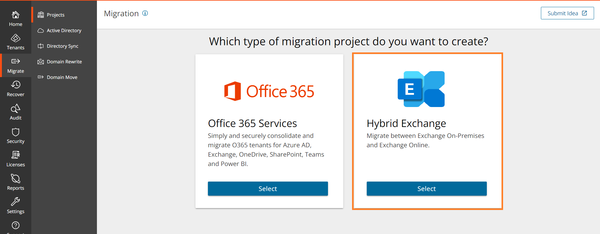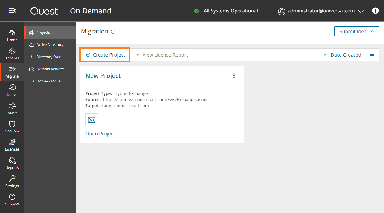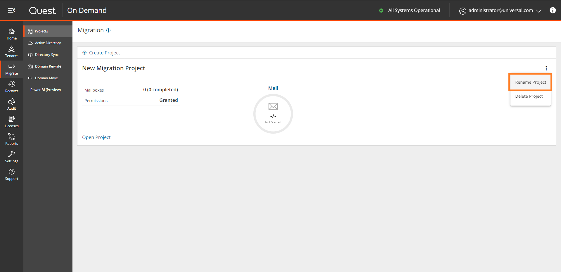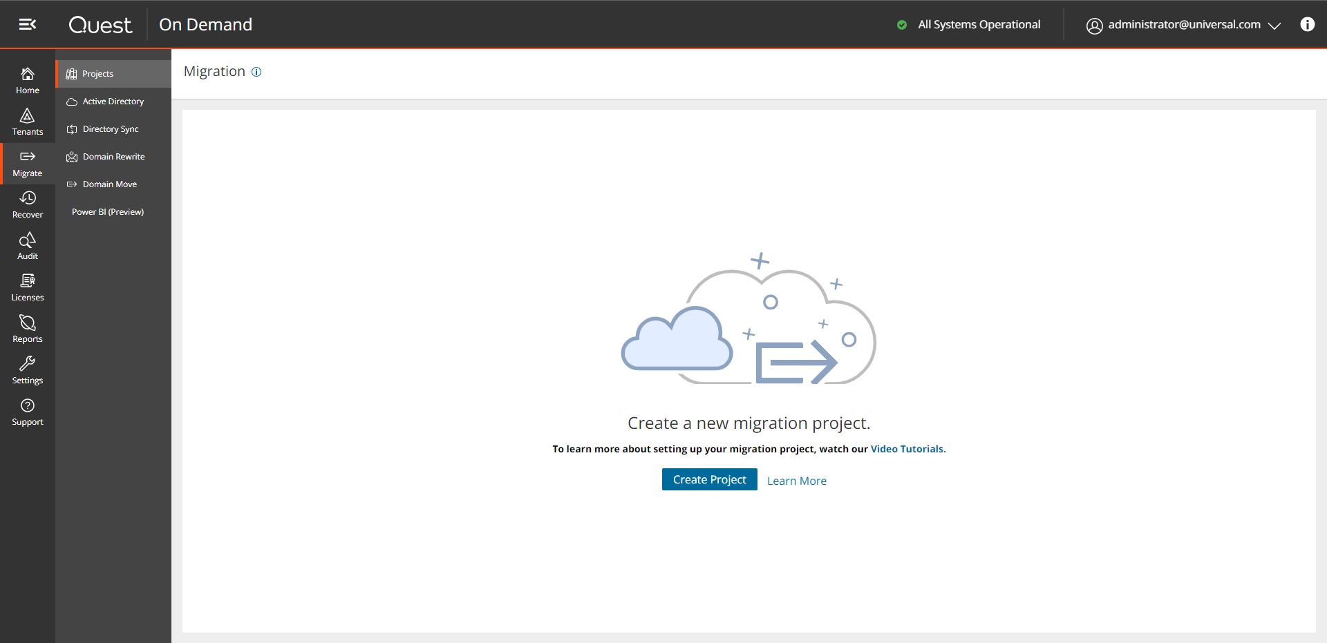 A migration project contains the full set of migration features and provides a summary of all the migration activities in the project dashboard. You can work with a single migration project or you can set up multiple migration projects to split staggered migration plans into manageable projects.